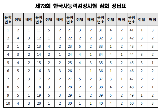 2025년 2월 16일 치러진 제73회 한능검 심화 문제 및 정답은 다음과 같습니다.